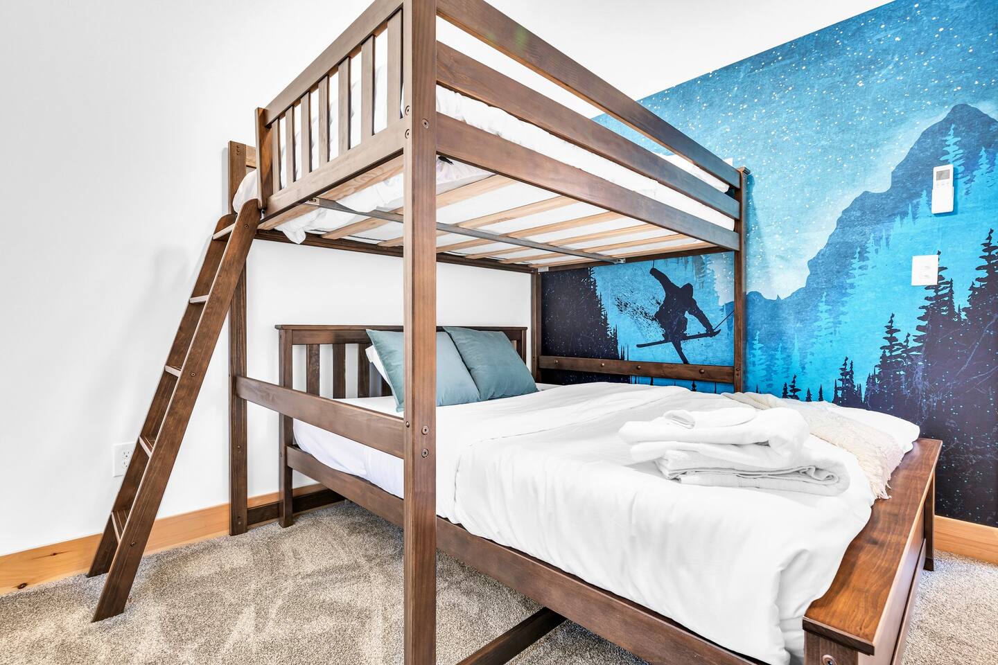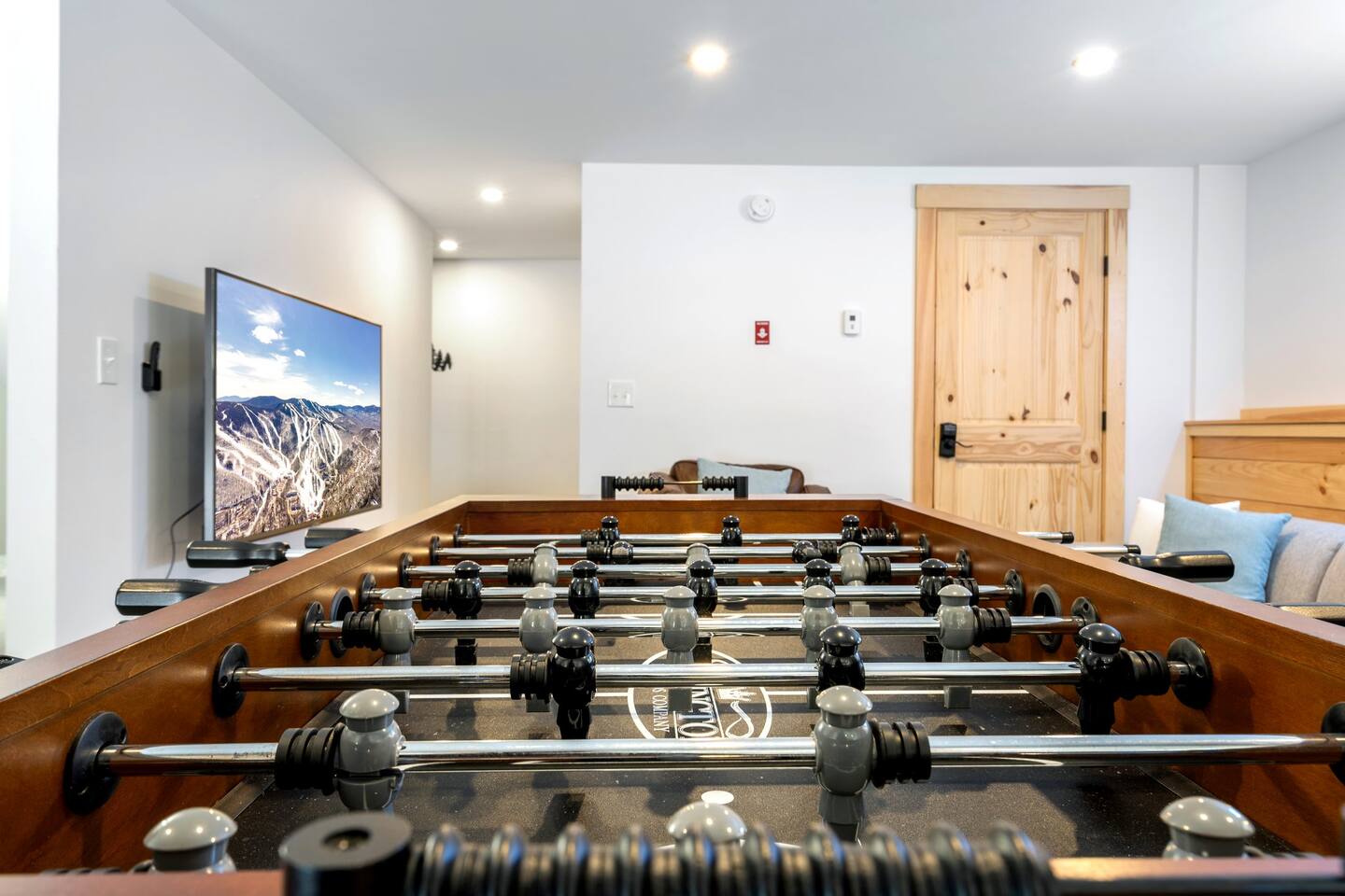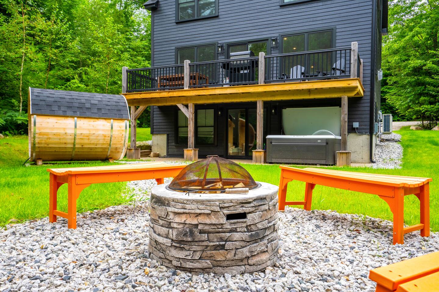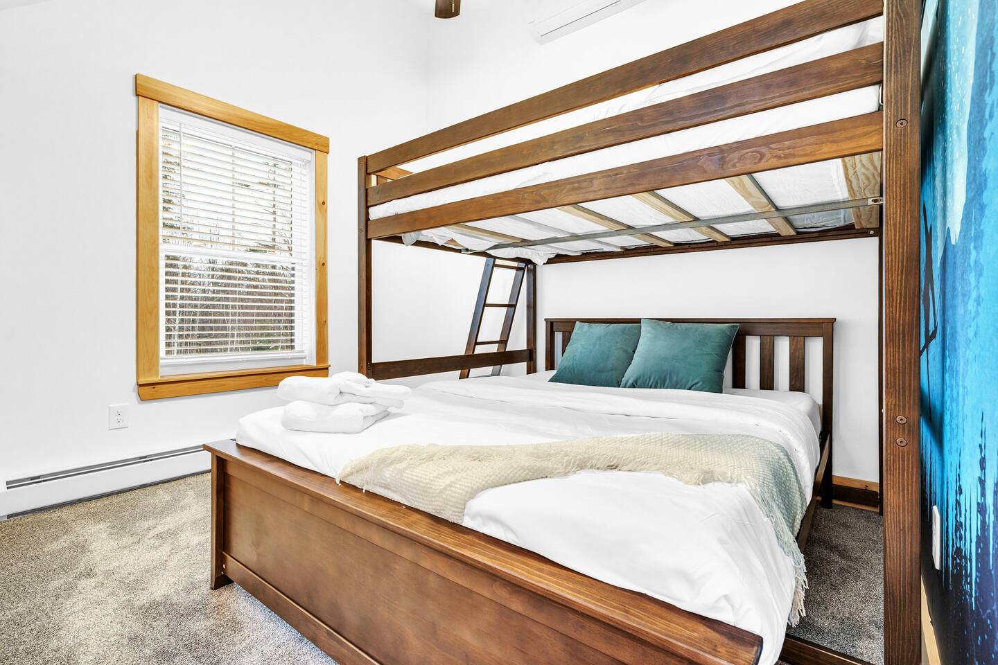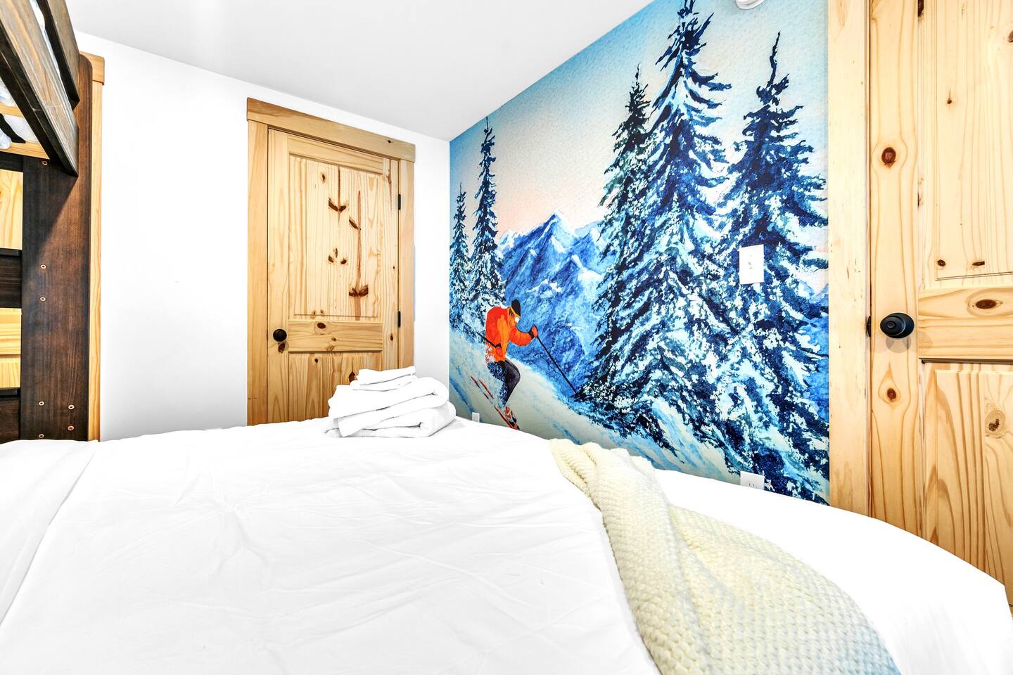 KEY FEATURES: ☀ 6 person hot tub ☀ Barrel Sauna ☀ Fire Pit ☀ Game Room- Arcade game, board games, foosball ☀ Modern kitchen with stainless steel appliances ☀ Air Conditioning 4 Bedrooms: 8 beds; 1 King, 1 Queen, 1 Full over Queen, 1 Twin over Queen, 1 Twin over Twin Here Are A Few Kind Words From Our Past Guests: "We had an incredible stay at this chalet! The bedrooms were beautifully decorated, and the bathrooms, especially the master en suite, felt luxurious. The backyard stole the show with a barrel sauna and hot tub!!!! Highly recommended!" - Becca ☆☆ BEDROOMS ☆☆ The master bedroom features a luxurious king-sized bed and TV, while the queen bedroom exudes comfort in every way. The 2 bunk rooms allow for versatile sleeping arrangements one room including a full over queen bunk and the other room a twin over queen and twin over twin bunks and ensure a cozy and enjoyable stay for families or groups. ☆☆ BATHROOMS ☆☆ Pamper yourself in the well-appointed bathrooms of this chalet. The master bedroom boasts a full en suite bathroom featuring a stunning floor-to-ceiling tiled shower, offering a spa-like experience. Another full bathroom with an elegant tiled shower ensures convenience, complemented by a half bath for additional comfort. The basement level, housing the vibrant game area, includes a bathroom with a convenient tub-shower combo, providing flexibility and ensuring a delightful stay for all guests. ☆☆ KITCHEN, DINING, GREAT ROOM ☆☆ Experience seamless flow and modern comforts in the design of the kitchen, dining room, and living room in this chalet. The living room, adorned with tasteful decor, welcomes you with a cozy ambiance featuring a large smart TV and a comforting gas fireplace, creating a perfect setting for relaxation. The dining room boasts a spacious table, inviting the whole family to gather for delightful meals. The modern kitchen, equipped with state-of-the-art stainless steel appliances, adds both style and functionality to your culinary adventures, making this central living space a hub of warmth and contemporary charm. ☆☆ GAME ROOM ☆☆ The downstairs game room is a haven for entertainment, featuring foosball, board games, and an arcade game for endless fun. With a comfortable seating area and a Smart TV, it's the perfect space to unwind, and its direct access to the backyard transforms the area into an oasis of relaxation, seamlessly blending indoor and outdoor enjoyment. ☆☆ OUTSIDE SPACE ☆☆ Step into a backyard paradise that steals the show with its captivating features! The highlight is a brand new and popular barrel sauna, providing a unique and indulgent experience. The luxury 6-person hot tub adds a touch of opulence, and a dedicated firepit with inviting bench seating completes the ensemble, creating a perfect outdoor haven for relaxation and socializing. ★☆ Book Today & Let Us Take Care Of You! ☆★