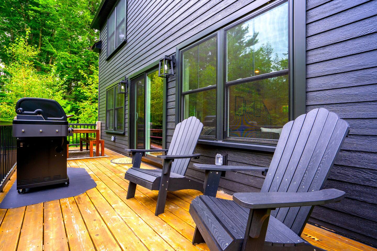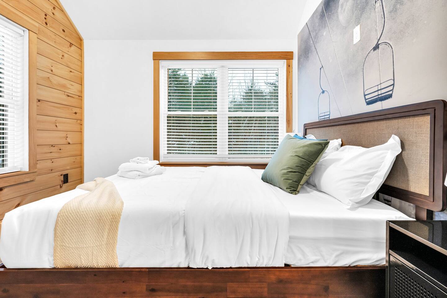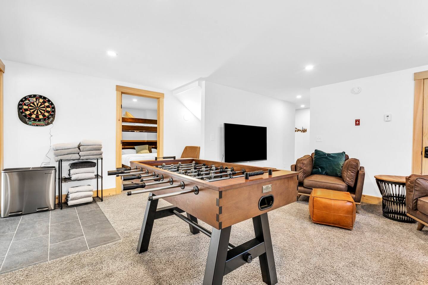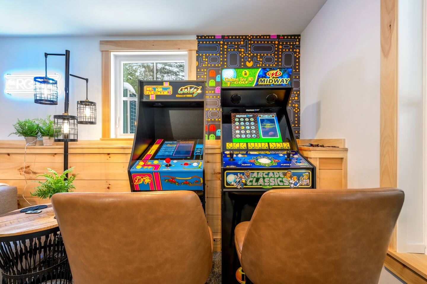 KEY FEATURES: ☀ 6 person hot tub ☀ Barrel Sauna ☀ Fire Pit ☀ Game Room- Arcade game, board games, foosball ☀ Modern kitchen with stainless steel appliances ☀ Air Conditioning 4 Bedrooms: 8 beds; 1 King, 1 Queen, 1 Full over Queen, 1 Twin over Queen, 1 Twin over Twin Here Are A Few Kind Words From Our Past Guests: "We had an incredible stay at this chalet! The bedrooms were beautifully decorated, and the bathrooms, especially the master en suite, felt luxurious. The backyard stole the show with a barrel sauna and hot tub!!!! Highly recommended!" - Becca ☆☆ BEDROOMS ☆☆ The master bedroom features a luxurious king-sized bed and TV, while the queen bedroom exudes comfort in every way. The 2 bunk rooms allow for versatile sleeping arrangements one room including a full over queen bunk and the other room a twin over queen and twin over twin bunks and ensure a cozy and enjoyable stay for families or groups. ☆☆ BATHROOMS ☆☆ Pamper yourself in the well-appointed bathrooms of this chalet. The master bedroom boasts a full en suite bathroom featuring a stunning floor-to-ceiling tiled shower, offering a spa-like experience. Another full bathroom with an elegant tiled shower ensures convenience, complemented by a half bath for additional comfort. The basement level, housing the vibrant game area, includes a bathroom with a convenient tub-shower combo, providing flexibility and ensuring a delightful stay for all guests. ☆☆ KITCHEN, DINING, GREAT ROOM ☆☆ Experience seamless flow and modern comforts in the design of the kitchen, dining room, and living room in this chalet. The living room, adorned with tasteful decor, welcomes you with a cozy ambiance featuring a large smart TV and a comforting gas fireplace, creating a perfect setting for relaxation. The dining room boasts a spacious table, inviting the whole family to gather for delightful meals. The modern kitchen, equipped with state-of-the-art stainless steel appliances, adds both style and functionality to your culinary adventures, making this central living space a hub of warmth and contemporary charm. ☆☆ GAME ROOM ☆☆ The downstairs game room is a haven for entertainment, featuring foosball, board games, and an arcade game for endless fun. With a comfortable seating area and a Smart TV, it's the perfect space to unwind, and its direct access to the backyard transforms the area into an oasis of relaxation, seamlessly blending indoor and outdoor enjoyment. ☆☆ OUTSIDE SPACE ☆☆ Step into a backyard paradise that steals the show with its captivating features! The highlight is a brand new and popular barrel sauna, providing a unique and indulgent experience. The luxury 6-person hot tub adds a touch of opulence, and a dedicated firepit with inviting bench seating completes the ensemble, creating a perfect outdoor haven for relaxation and socializing. ★☆ Book Today & Let Us Take Care Of You! ☆★