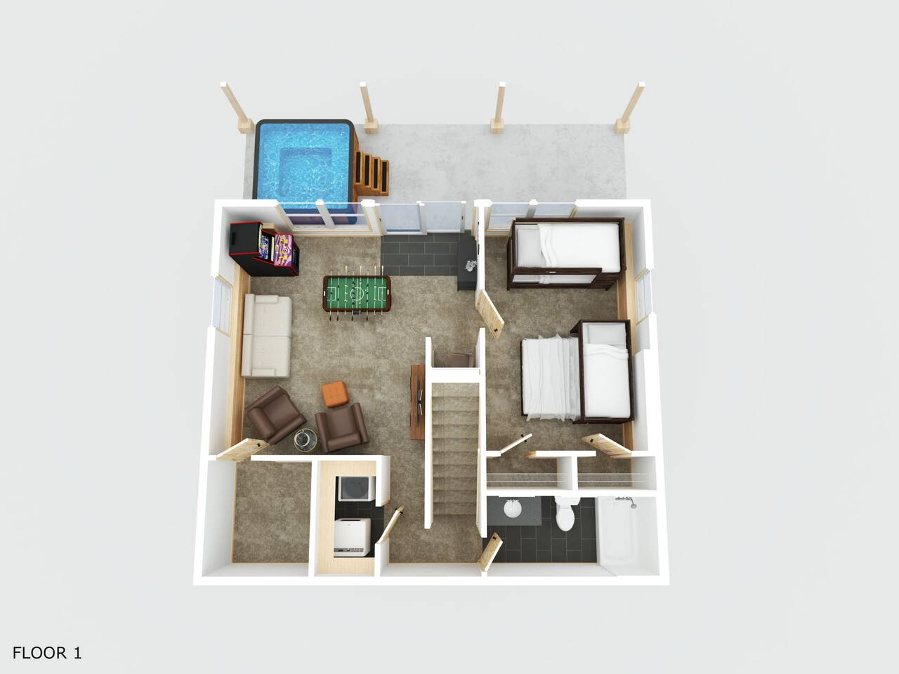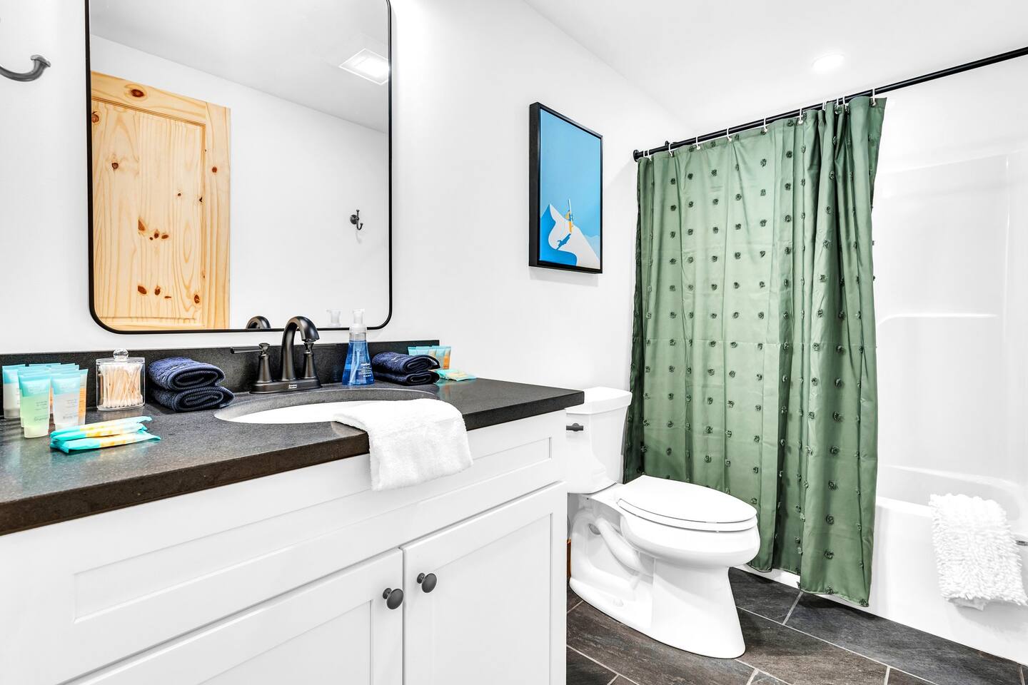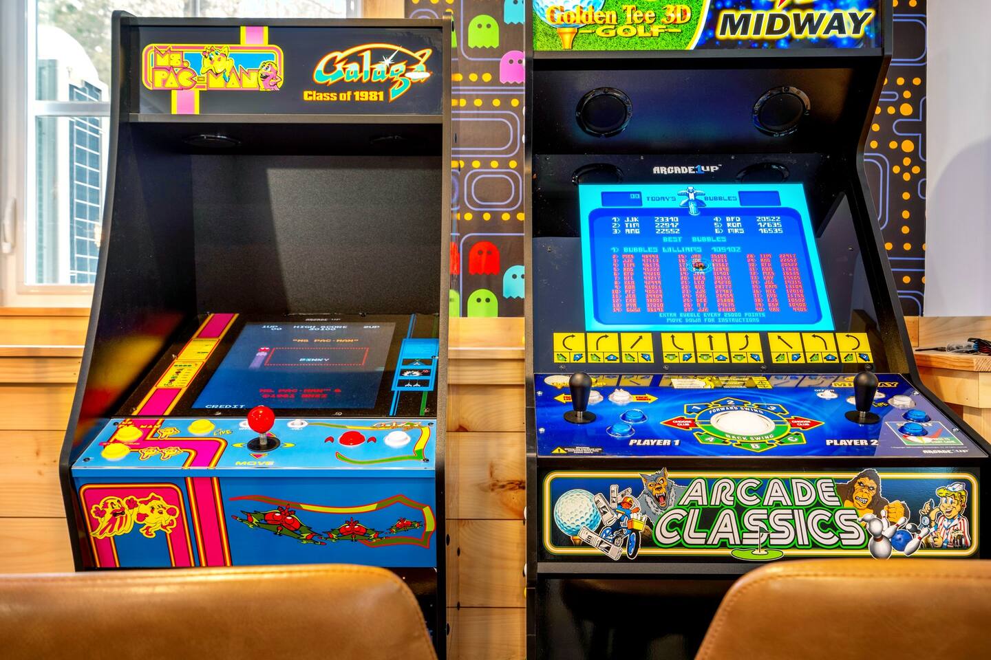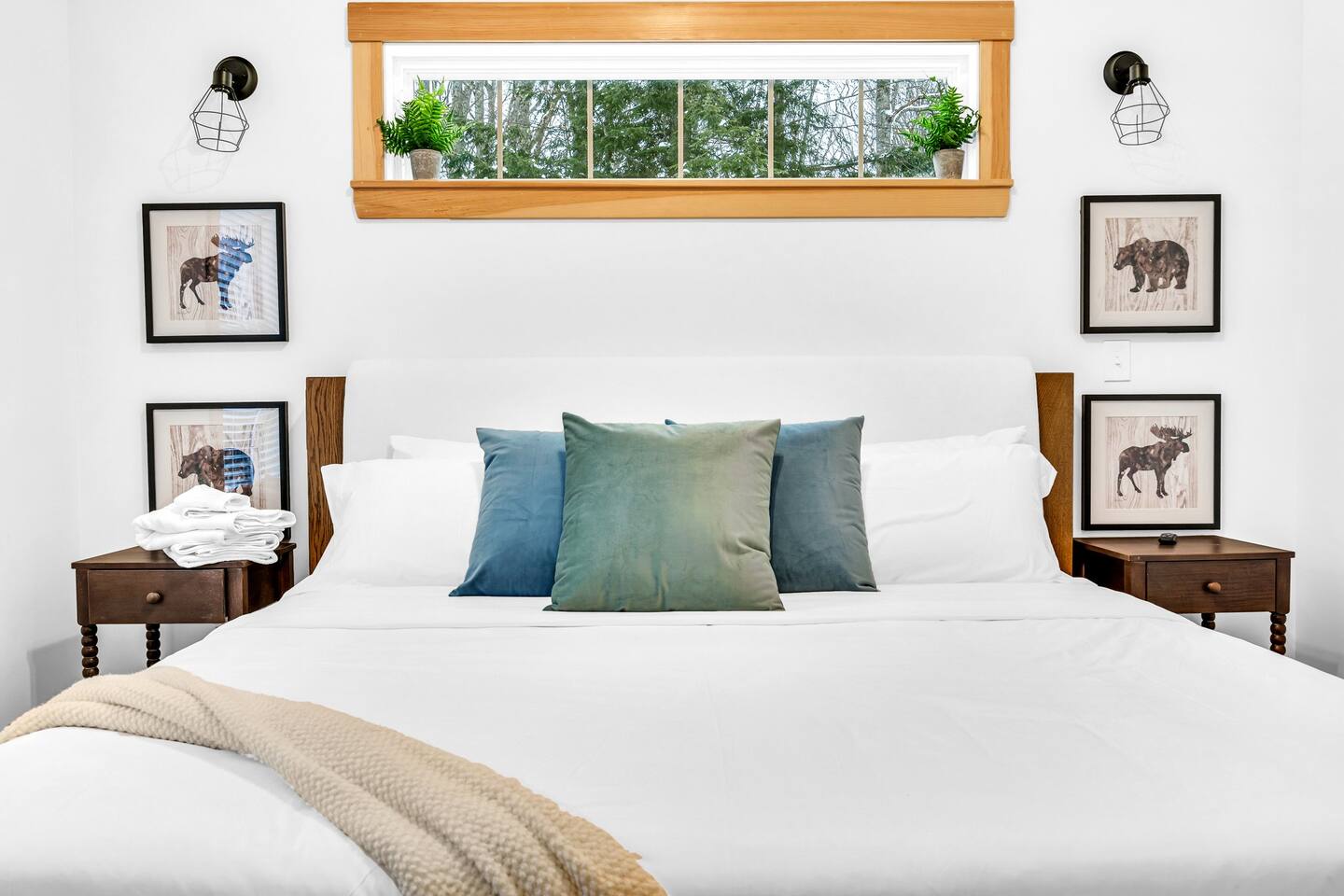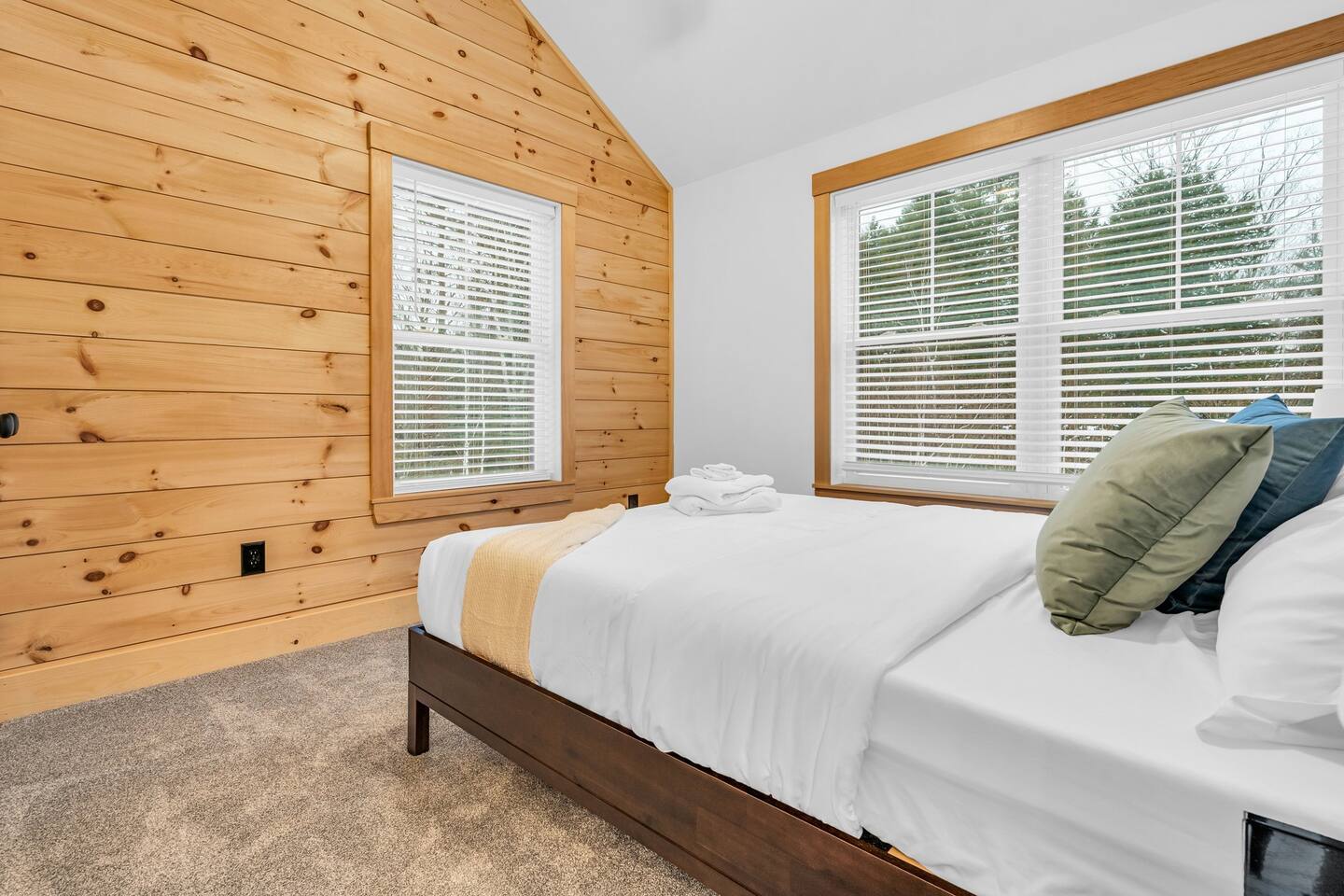 KEY FEATURES: ☀ 6 person hot tub ☀ Barrel Sauna ☀ Fire Pit ☀ Game Room- Arcade game, board games, foosball ☀ Modern kitchen with stainless steel appliances ☀ Air Conditioning 4 Bedrooms: 8 beds; 1 King, 1 Queen, 1 Full over Queen, 1 Twin over Queen, 1 Twin over Twin Here Are A Few Kind Words From Our Past Guests: "We had an incredible stay at this chalet! The bedrooms were beautifully decorated, and the bathrooms, especially the master en suite, felt luxurious. The backyard stole the show with a barrel sauna and hot tub!!!! Highly recommended!" - Becca ☆☆ BEDROOMS ☆☆ The master bedroom features a luxurious king-sized bed and TV, while the queen bedroom exudes comfort in every way. The 2 bunk rooms allow for versatile sleeping arrangements one room including a full over queen bunk and the other room a twin over queen and twin over twin bunks and ensure a cozy and enjoyable stay for families or groups. ☆☆ BATHROOMS ☆☆ Pamper yourself in the well-appointed bathrooms of this chalet. The master bedroom boasts a full en suite bathroom featuring a stunning floor-to-ceiling tiled shower, offering a spa-like experience. Another full bathroom with an elegant tiled shower ensures convenience, complemented by a half bath for additional comfort. The basement level, housing the vibrant game area, includes a bathroom with a convenient tub-shower combo, providing flexibility and ensuring a delightful stay for all guests. ☆☆ KITCHEN, DINING, GREAT ROOM ☆☆ Experience seamless flow and modern comforts in the design of the kitchen, dining room, and living room in this chalet. The living room, adorned with tasteful decor, welcomes you with a cozy ambiance featuring a large smart TV and a comforting gas fireplace, creating a perfect setting for relaxation. The dining room boasts a spacious table, inviting the whole family to gather for delightful meals. The modern kitchen, equipped with state-of-the-art stainless steel appliances, adds both style and functionality to your culinary adventures, making this central living space a hub of warmth and contemporary charm. ☆☆ GAME ROOM ☆☆ The downstairs game room is a haven for entertainment, featuring foosball, board games, and an arcade game for endless fun. With a comfortable seating area and a Smart TV, it's the perfect space to unwind, and its direct access to the backyard transforms the area into an oasis of relaxation, seamlessly blending indoor and outdoor enjoyment. ☆☆ OUTSIDE SPACE ☆☆ Step into a backyard paradise that steals the show with its captivating features! The highlight is a brand new and popular barrel sauna, providing a unique and indulgent experience. The luxury 6-person hot tub adds a touch of opulence, and a dedicated firepit with inviting bench seating completes the ensemble, creating a perfect outdoor haven for relaxation and socializing. ★☆ Book Today & Let Us Take Care Of You! ☆★